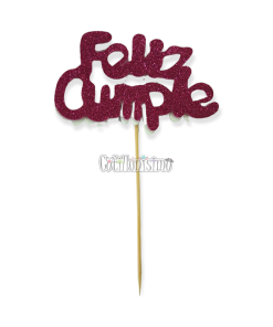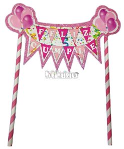 Banderin para Torta Feliz Cumple Rosa y Fucsia
