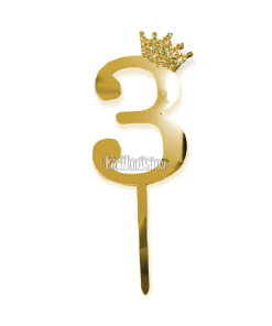 Topper para Torta Dorado Nº3 Con Corona 11cm