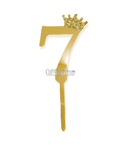 Topper para Torta Dorado Nº7 Con Corona 11cm