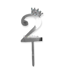 Topper para Torta Plateado Nº2 Con Corona 11cm