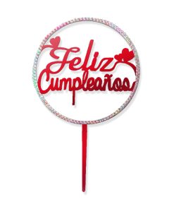 Topper para Torta Rojo con Strass Feliz Cumpleaños x1 Unidad