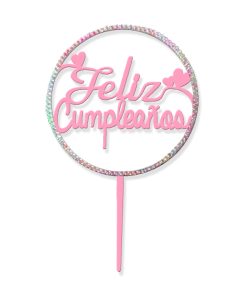 Topper para Torta Rosa con Strass Feliz Cumpleaños x1 Unidad