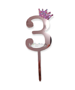 Topper para Torta Rosa Gold Nº3 Con Corona 11cm
