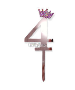 Topper para Torta Rosa Gold Nº4 Con Corona 11cm