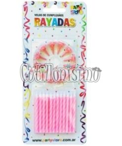 Vela Rayada Torneada Rosa X24u con 12 Bases