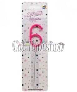 Vela CHISPITA Numero 6 Color Rosa Sparkles