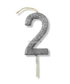 Vela Gibreada Numero 2 Color Plateado 11cm