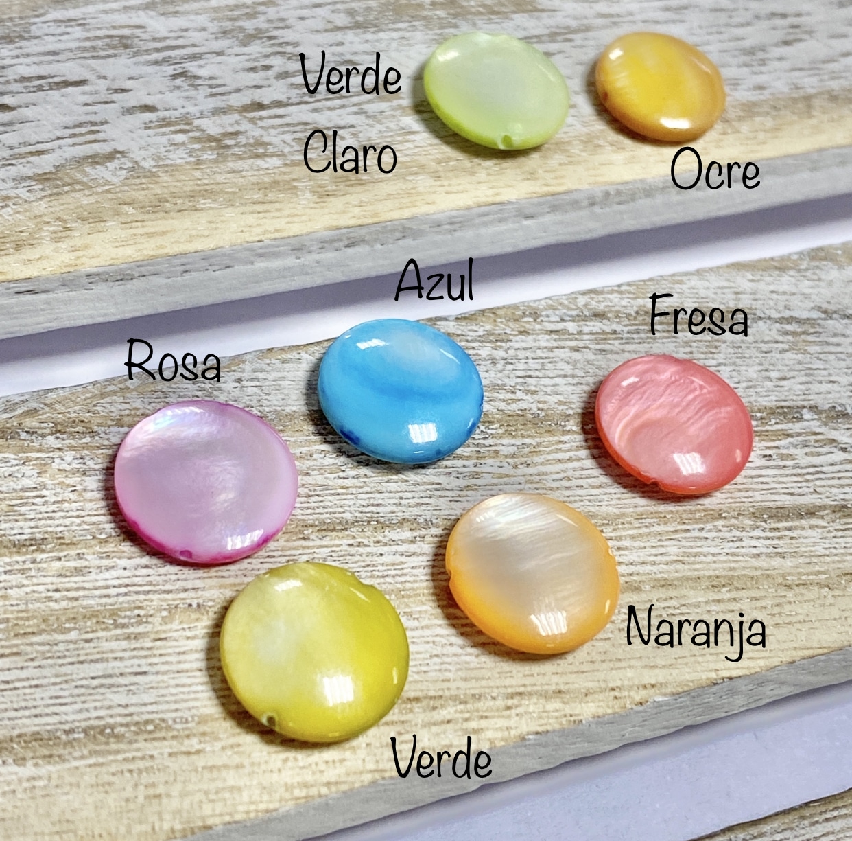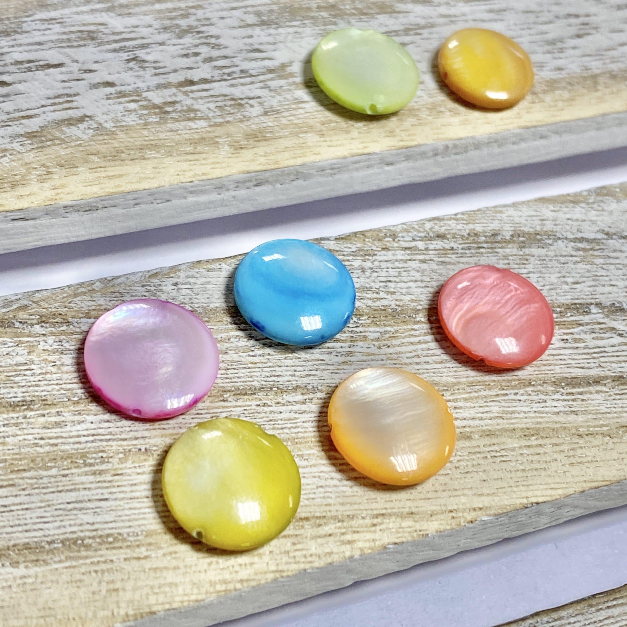 Abalorio de nácar redondo con un diámetro de 12mm aprox. disponible en distintos colores.