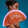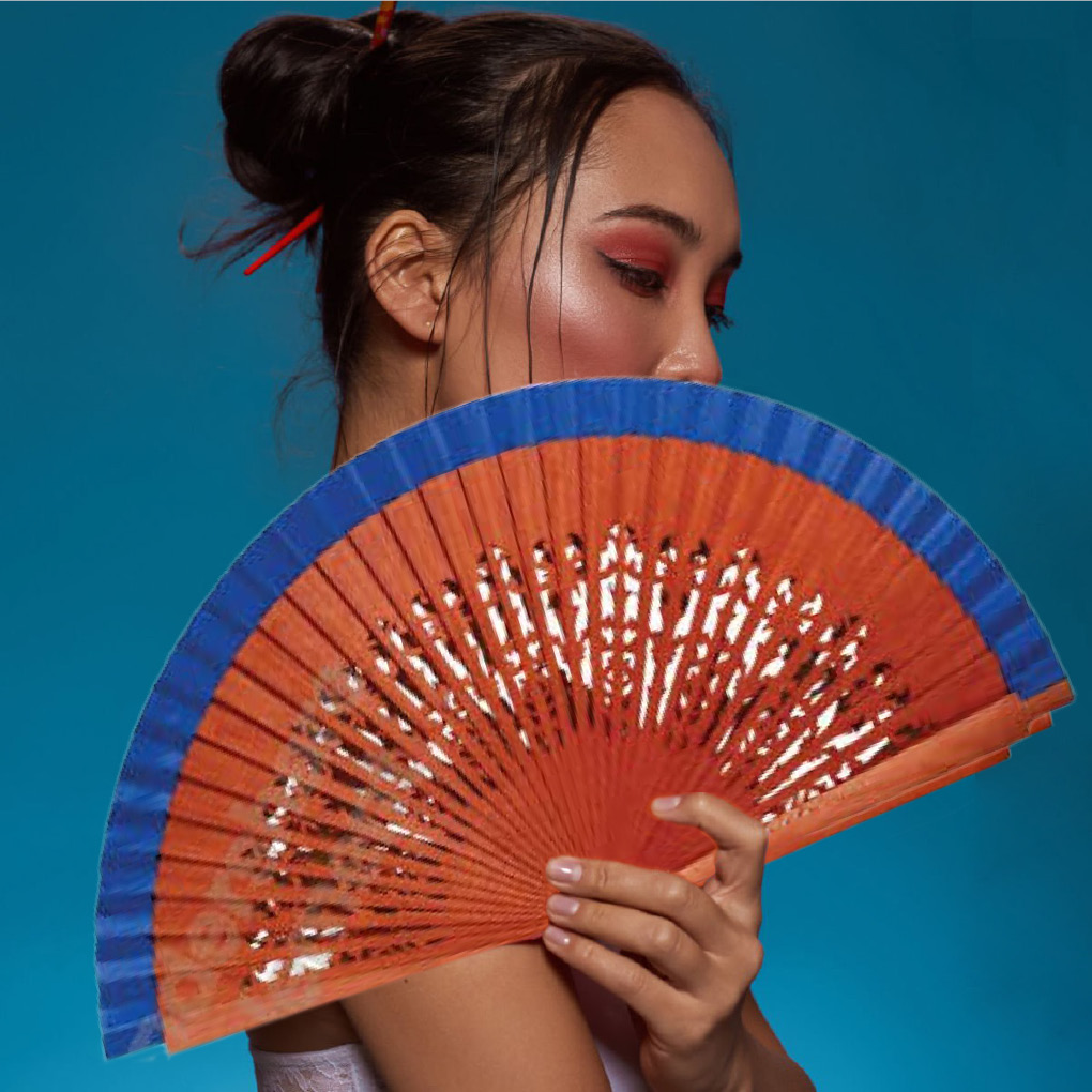 Abanico madera calada tela azul