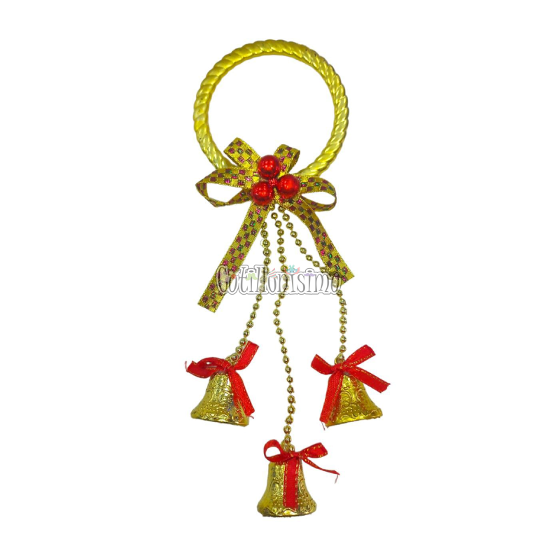 Adorno Colgante Dorado y Rojo 3 Campanas y Moño con Bayas