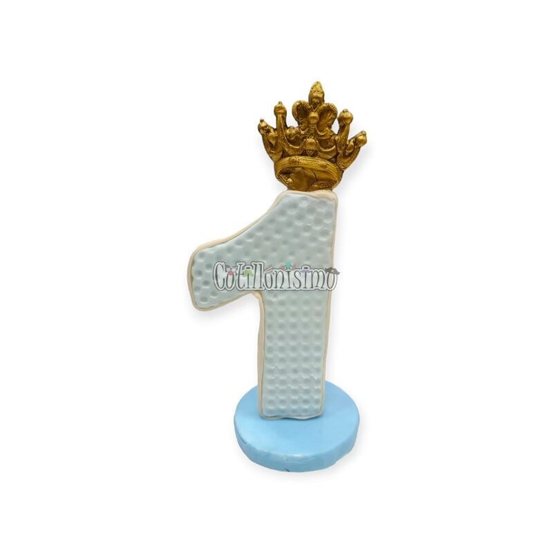 Adorno de Porcelana Fría N° Uno Celeste con Corona Dorada Nene