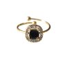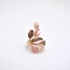 R04/5549 – Bonito anillo dorado de acero inoxidable. Presenta decoraciones con dos cristales fucsias.