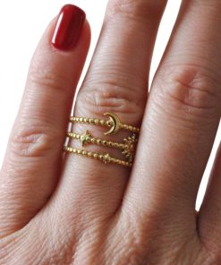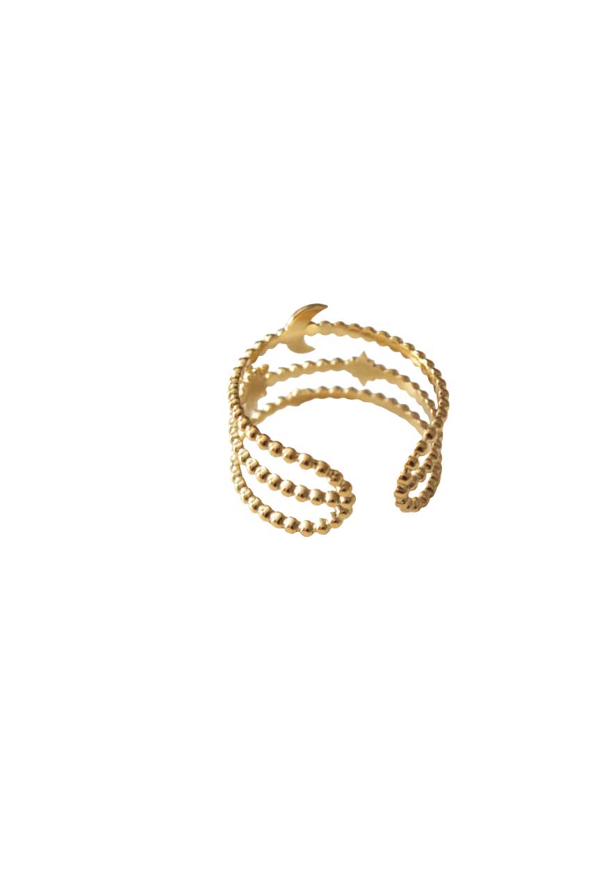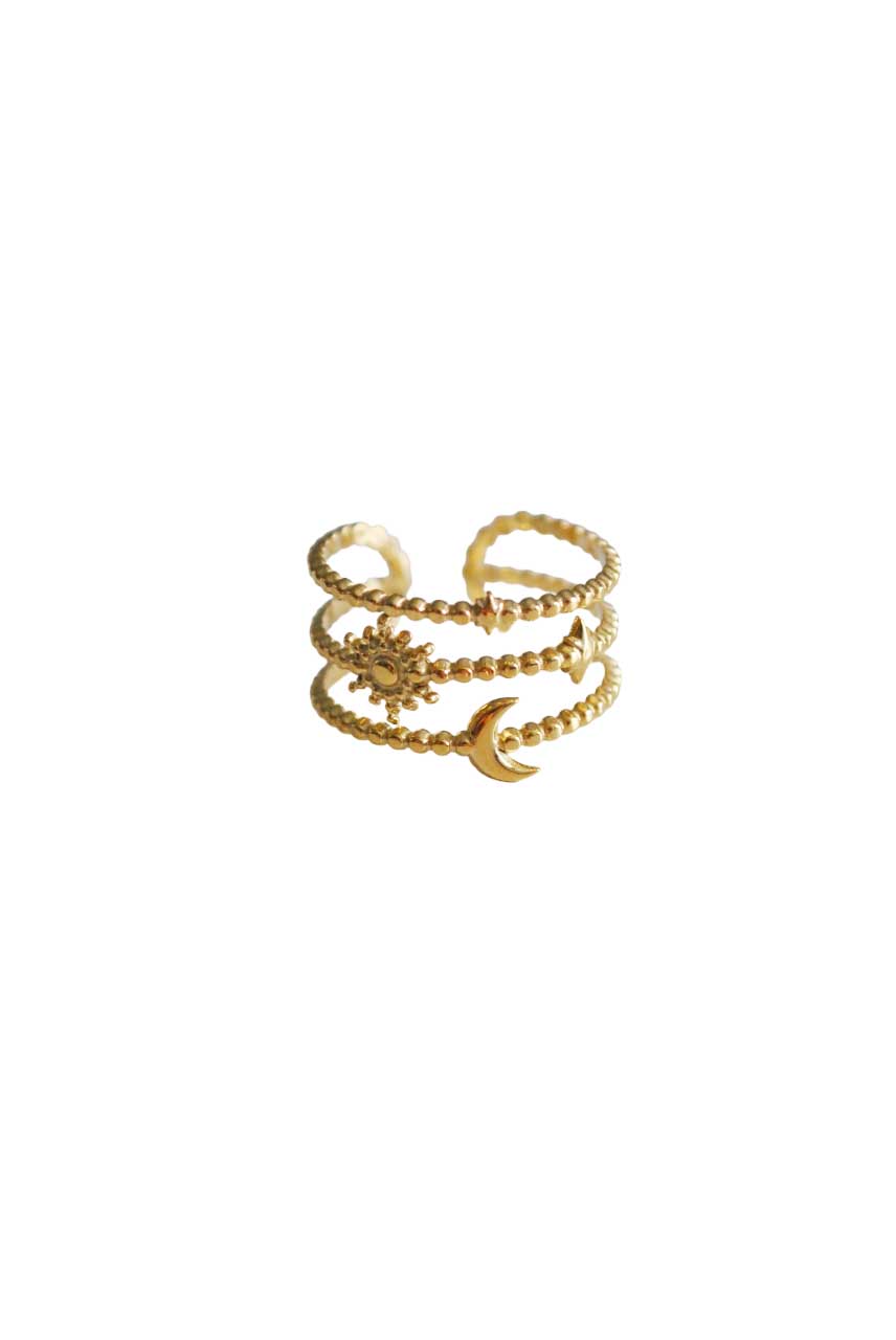 R04/5547 – Original anillo dorado de acero inoxidable decorado con un sol, una estrella y la luna.