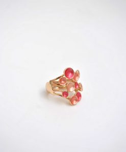 REF: 80150 – Destaca con estilo con nuestro anillo elástico rosa nude y coral, una pieza moderna y versátil que se adapta cómodamente a cualquier dedo gracias a su diseño elástico. Elaborado en tono dorado y decorado con círculos en tonos rosados y corales con acabado nacarado, este anillo aporta un toque de color, brillo y originalidad a tu look diario o de noche. ¡Perfecto para regalar o para lucirlo tú misma!