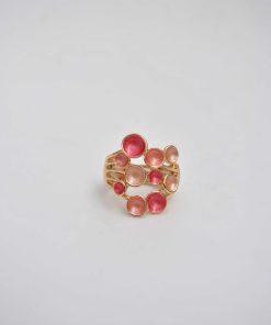REF: 80150 – Destaca con estilo con nuestro anillo elástico rosa nude y coral, una pieza moderna y versátil que se adapta cómodamente a cualquier dedo gracias a su diseño elástico. Elaborado en tono dorado y decorado con círculos en tonos rosados y corales con acabado nacarado, este anillo aporta un toque de color, brillo y originalidad a tu look diario o de noche. ¡Perfecto para regalar o para lucirlo tú misma!