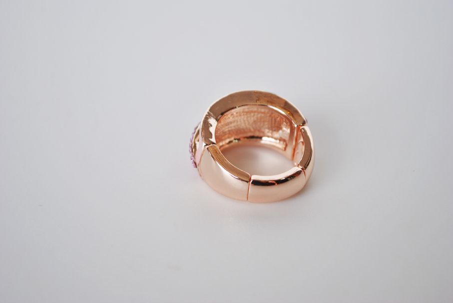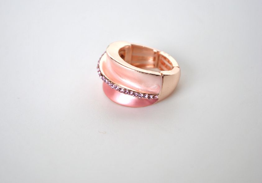 Anillo de mujer fabricado en bisutería oro rosa. Muy cómodo y se ajusta perfectamente al dedo gracias a la goma elástica que tiene. Destacan esmaltes mate combinados en diferentes tonos de rosa y elegantes brillantes rosas.