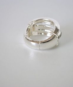 R02/4596 – Elegante anillo de mujer fabricado en bisutería plateada. Muy cómodo y se ajusta perfectamente al dedo gracias a la goma elástica que tiene.