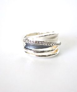 R02/4596 – Elegante anillo de mujer fabricado en bisutería plateada. Muy cómodo y se ajusta perfectamente al dedo gracias a la goma elástica que tiene.