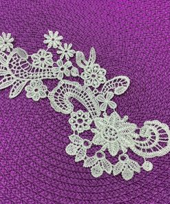 Aplique de tela con lentejuelas con unas medidas de 8,5cm de largo y 5cm de ancho.