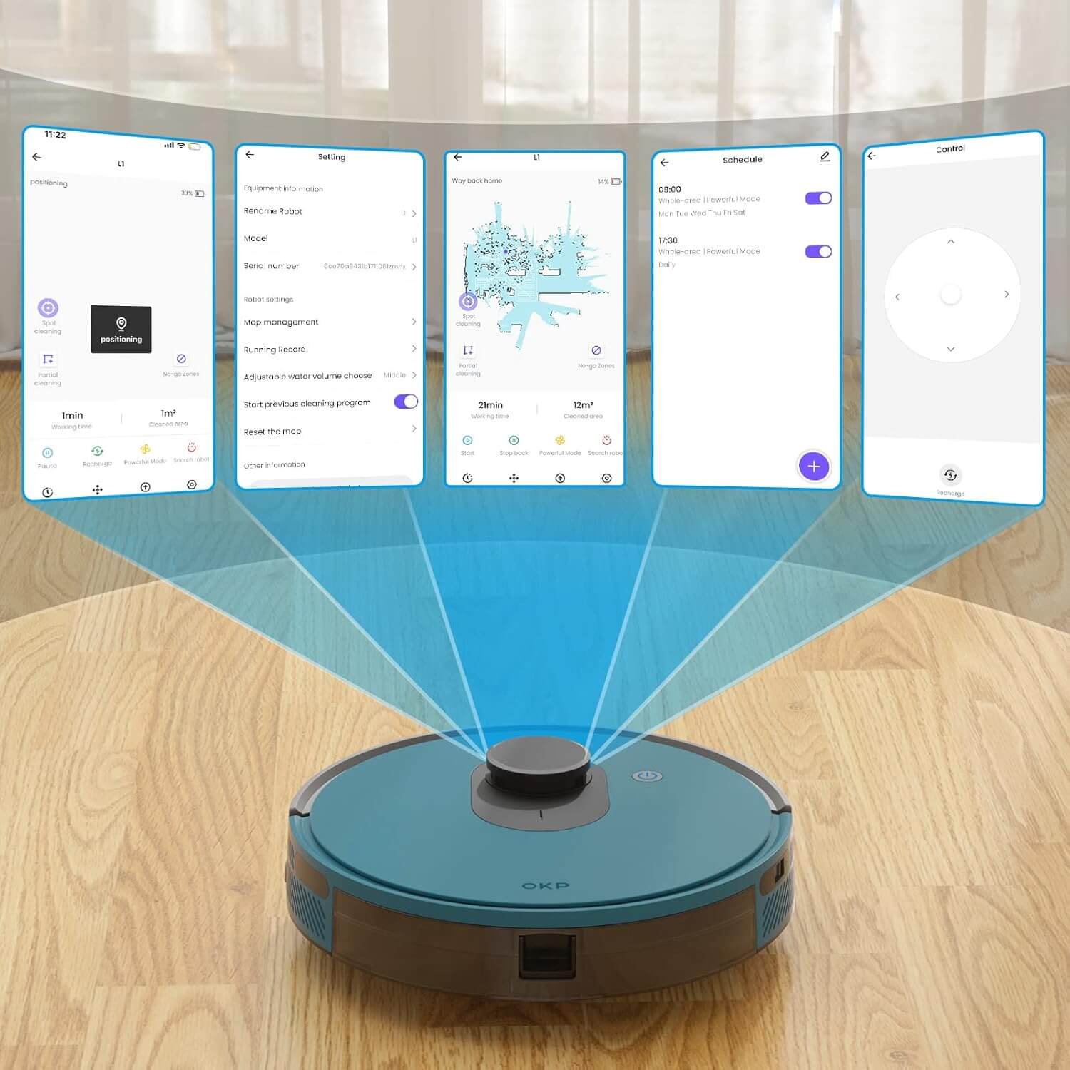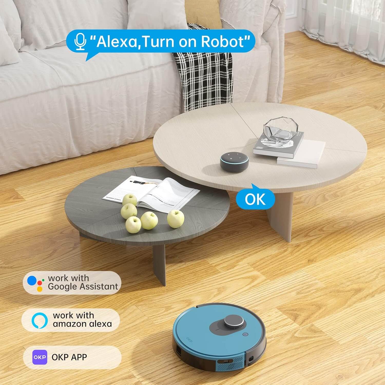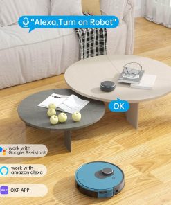 Robot Inteligente Lidar La integración con la aplicación Smart OKP proporciona una experiencia de control intuitivo desde tu smartphone. Desde la app, puedes crear planes de limpieza, cambiar los modos de limpieza o pausar el robot, todo de forma remota, sin necesidad de estar cerca del dispositivo. Además, su compatibilidad con Alexa y Google Assistant te permite dar órdenes de voz, iniciando o pausando la limpieza sin mover un dedo. Este control remoto te ahorra tiempo y esfuerzo, permitiéndote disfrutar de tu tiempo libre mientras el robot se encarga de la limpieza.