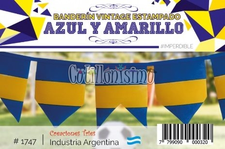 Banderin Vintage Estampado AZUL y AMARILLO 3Mts (FRISELINA)