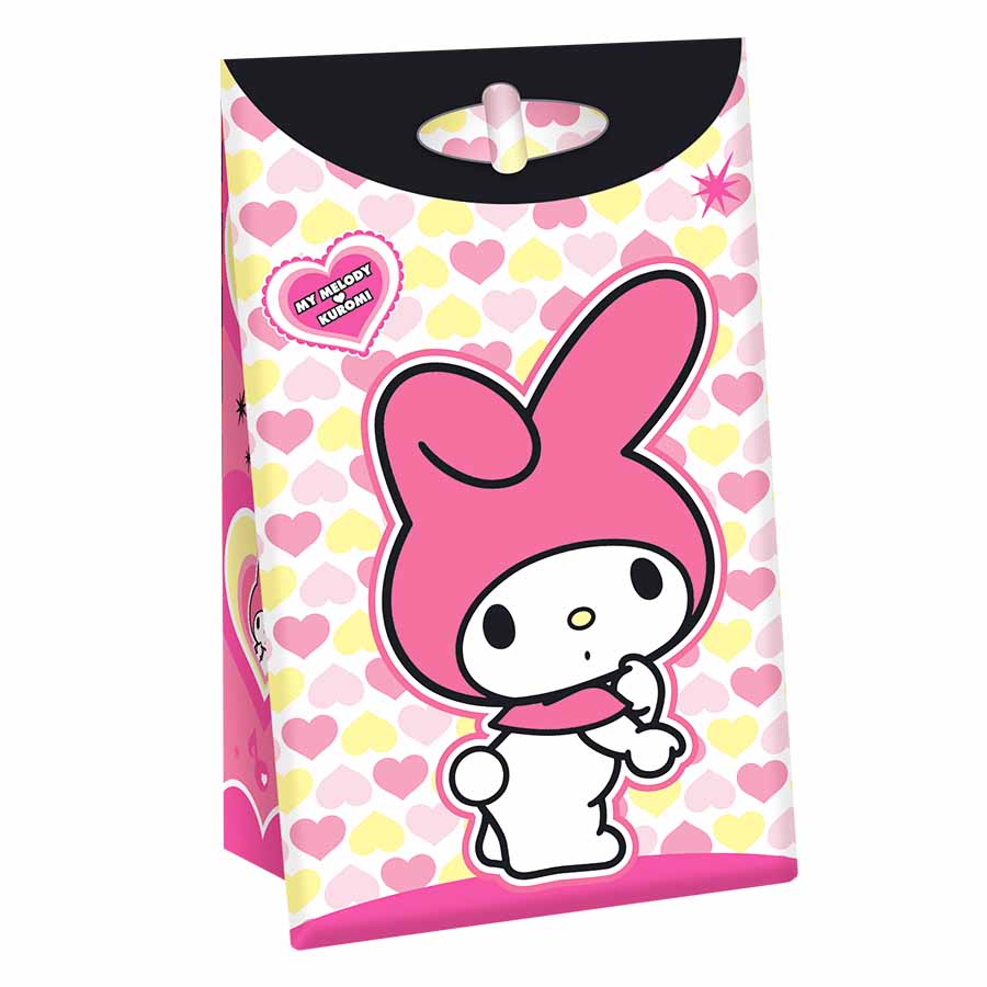 Bolsas de Cartón KUROMI Y MELODY con Fuelle y Glitter x8 Unidades Licencia Oficial C.O