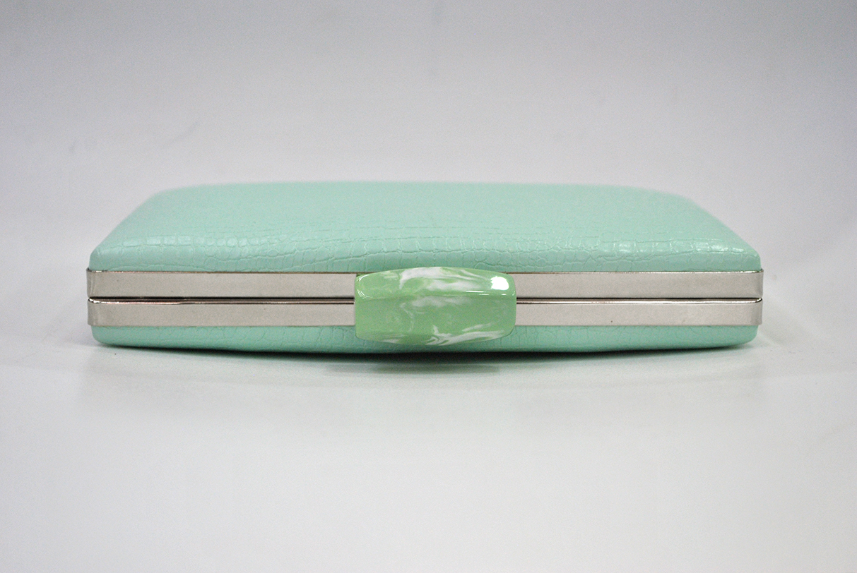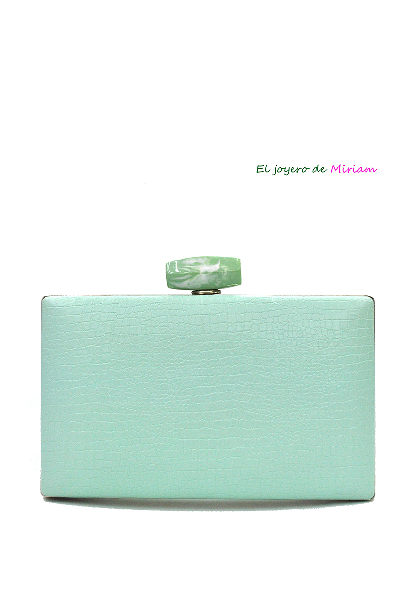 R03/5119 – Original cartera de fiesta, bolso clutch de polipiel de color AGUAMARINA con cierre tipo mármol. Presenta una bonita forma rectangular con la montura plateada, diseño fino y elegante con el que serás la invitada perfecta, especial madrinas, tamaño muy cómodo de llevar en la mano, le quedara estupendo con vestidos de fiesta o noche en bodas, comuniones, bautizos y otros eventos, lleva la cadena plateada en el interior para colgar.
