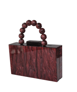 RAD0920245841 – Bonito y elegante bolso de fiesta clutch granate con asa decorado con bolas de carey. Se trata de un bolso diseñado en forma de cajita y, fabricado en carey sintético de color vino – granate. El cierre es de imán y, lo puedes llevar cómodamente colgado gracias a la codena dorada que consta en el interior.