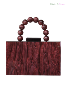 RAD0920245841 – Bonito y elegante bolso de fiesta clutch granate con asa decorado con bolas de carey. Se trata de un bolso diseñado en forma de cajita y, fabricado en carey sintético de color vino – granate. El cierre es de imán y, lo puedes llevar cómodamente colgado gracias a la codena dorada que consta en el interior.
