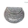 R03/5267 – Precioso bolso de fiesta clutch metalizado. Se trata de un bolso fabricado en polipiel metalizada combinada en varios colores. La parte trasera también es de polipiel y es dorada y lisa. Consta de cadena dorada metálica para llevarlo más cómodamente colgado.