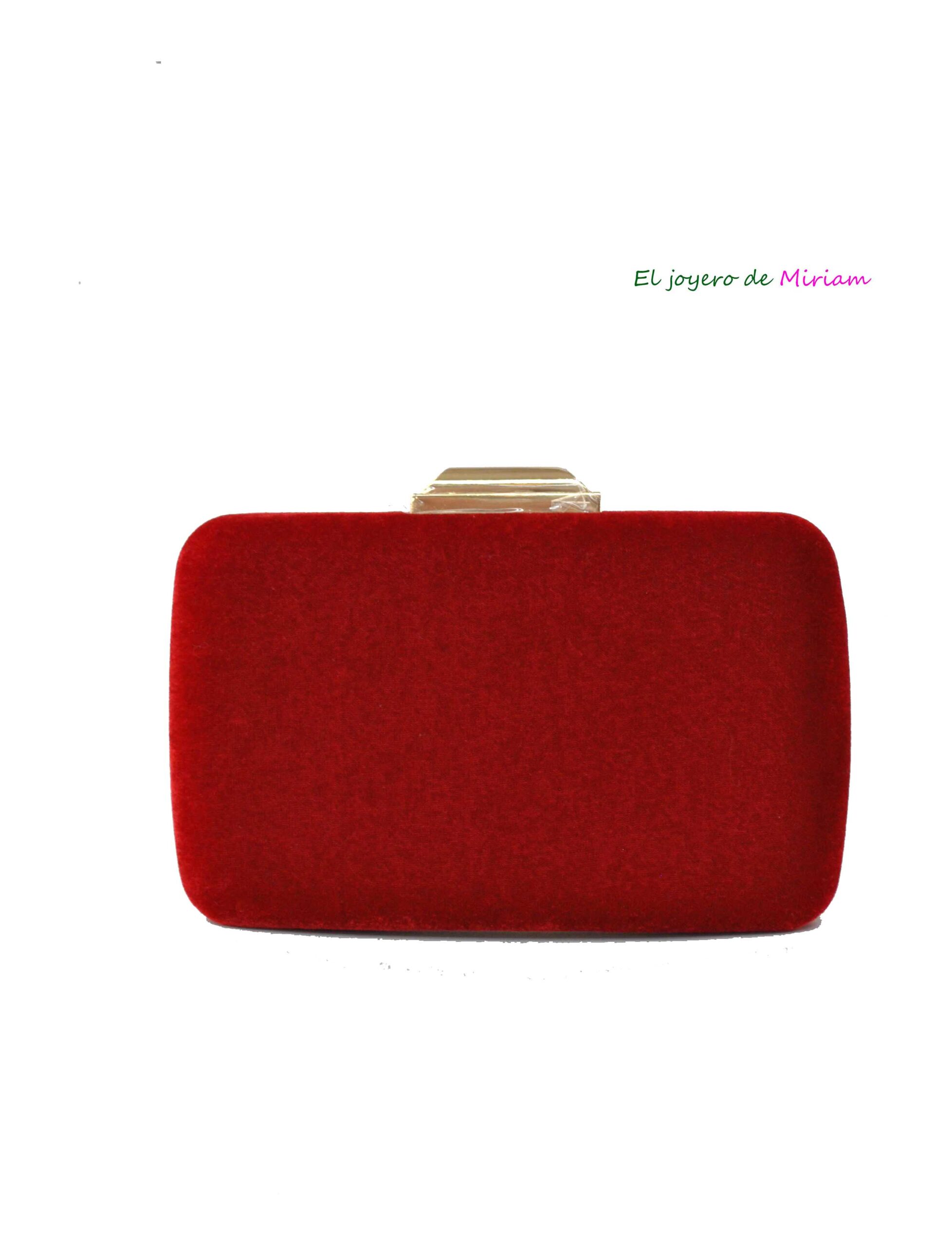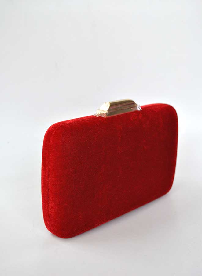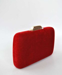 RAD249115833 – Elegante bolso clutch o cartera de fiesta de color ROJO fabricado en terciopelo, diseñado con forma ovalada. Consta de la montura y la cadena larga en dorado, detalle de cierre rectangular, cómodo y original.