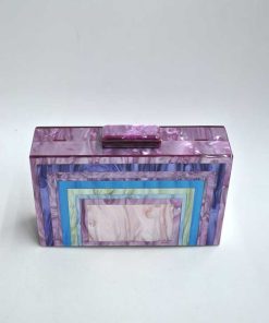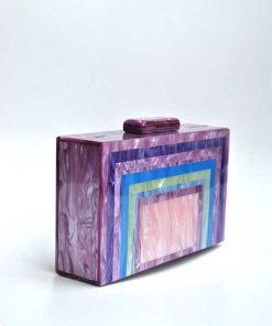 R04/5757 – Elegante y original bolso de fiesta clutch nácar multi morado. Se trata de un bolso diseñado en forma de cajita, cómodo y versátil. Presenta cadena en el interior en dorado para llevarlo más cómodamente colgado.