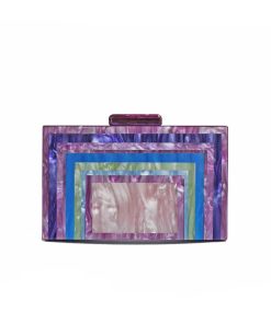 R04/5757 – Elegante y original bolso de fiesta clutch nácar multi morado. Se trata de un bolso diseñado en forma de cajita, cómodo y versátil. Presenta cadena en el interior en dorado para llevarlo más cómodamente colgado.