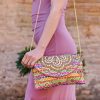 Bolso Lys de mujer decorado a mano con plumas de gallo disponible en varios colores.