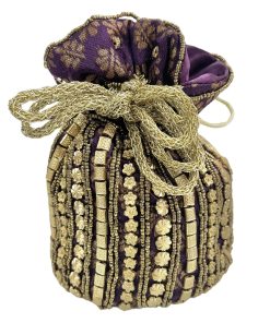Con forro interior y cordón dorado que hace de asa para sujetar.
