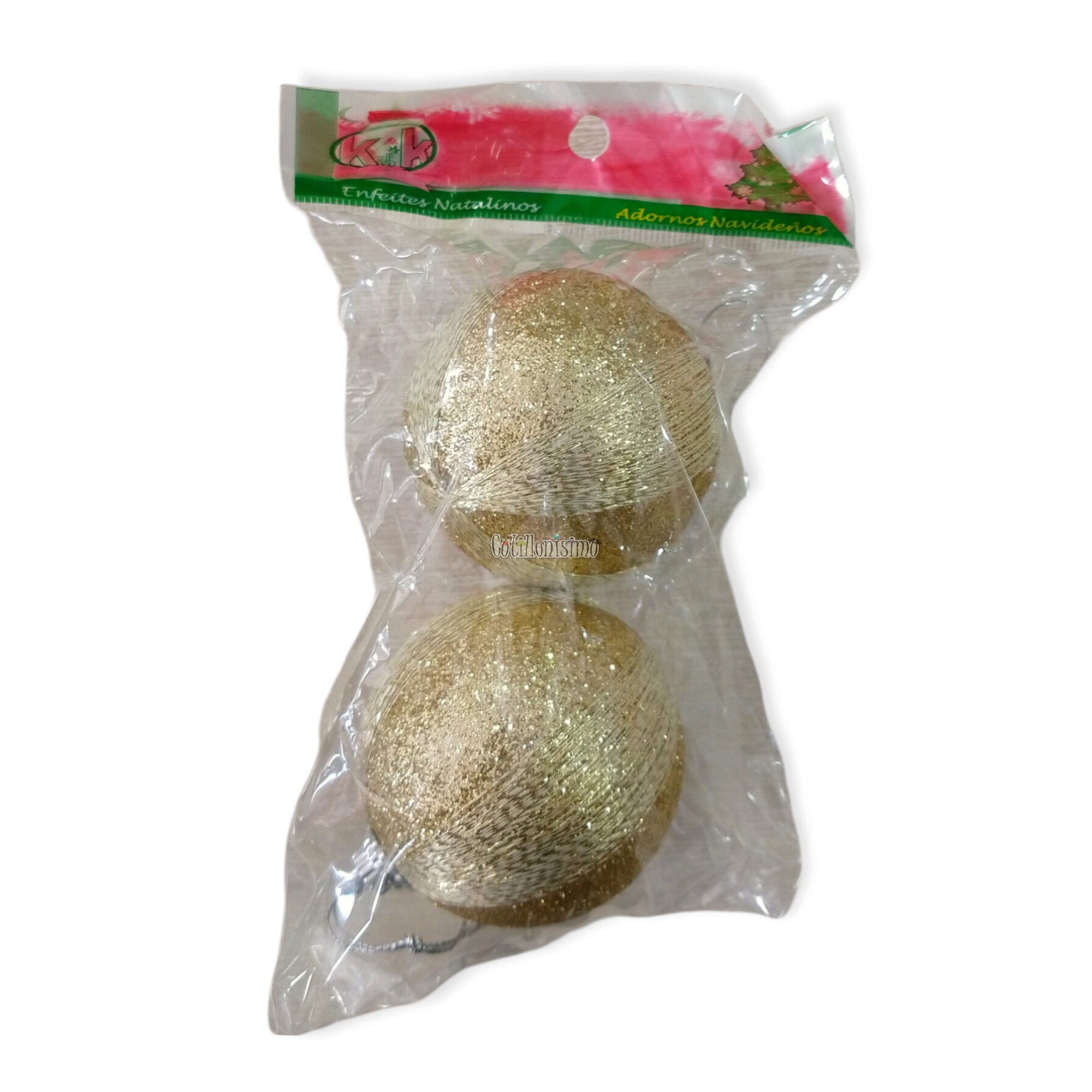 Bola de Navidad con Brillo Gibre Color Dorado 6cm x2 Unidades