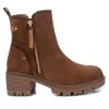 Bota de mujer, de la marca Carmela. Fabricada en piel de alta calidad. Cierre mediante cremallera lateral. Tirador trasero que facilita la puesta. Correa con detalle metálico con logo de la marca y cremallera decorativa en el lateral. Tacón ancho de 7 cm con suela track antideslizante.