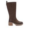 Bota de mujer, de la marca Refresh. Fabricada en material que imita la piel. Cierre mediante cremallera lateral. Tirador trasero para facilitar la puesta. Cómodo tacón ancho de 6 cm con suela track de goma antideslizante. Este modelo ha obtenido el certificado vegano por la organización mundial PETA (Organización de los derechos de los animales).