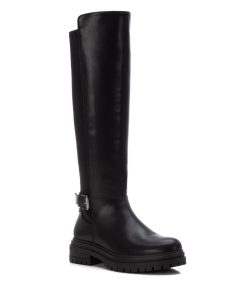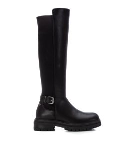 Bota de mujer, de la marca Xti. Fabricada en un material que imita la piel. Cierre cremallera lateral para facilitar su puesta. Caña elástica para un buen ajuste. Bota tipo mosquetera con correa decorativa y hebilla metálica. Este modelo ha obtenido el certificado vegano por la organización mundial PETA (Organización de los derechos de los animales).