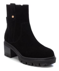 Botín de mujer, de la marca Carmela. Fabricado en serraje de alta calidad. Cierre mediante cremallera lateral. Tacón ancho de 6 cm con suela track de goma antideslizante.