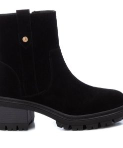 Botín de mujer, de la marca Carmela. Fabricado en serraje de alta calidad. Cierre mediante cremallera lateral. Tacón ancho de 6 cm con suela track de goma antideslizante.