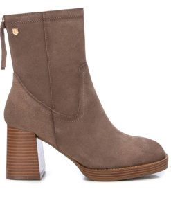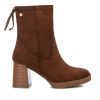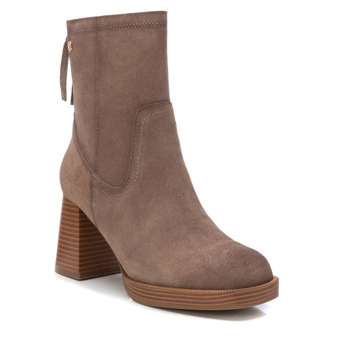 Botín de mujer, de la marca Carmela. Fabricado en serraje de alta calidad. Cierre mediante cremallera trasera. Tacón ancho de 8 cm y plataforma para mayor comodidad. Suela antideslizante.