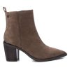 Botín de mujer, de la marca Carmela. Fabricado en serraje de alta calidad. Cierre mediante cremallera lateral. Tacón ancho de 9 cm. Suela antideslizante. Modelo sencillo, pero en tendencia que combinará perfecto con tus looks de invierno.