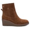 Botín de mujer, de la marca Carmela. Fabricado en serraje de alta calidad. Cierre lateral. Tirador trasero para facilitar la puesta. Cómoda cuña de 7 cm y suela gruesa antideslizante para mayor comodidad. Modelo básico que no puede faltar en el armario.
