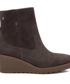 Botín de mujer, de la marca Carmela. Fabricado en serraje de alta calidad. Cierre lateral. Tirador trasero para facilitar la puesta. Cómoda cuña de 7 cm y suela gruesa antideslizante para mayor comodidad. Modelo básico que no puede faltar en el armario.