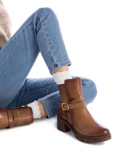 Botín de mujer, de la marca Carmela. Fabricada en piel de alta calidad. Cierre mediante cremallera lateral. Tirador trasero para facilitar la puesta. Correa con detalle metálico. Tacón ancho de 7 cm y suela track de goma antideslizante.
