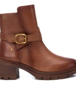 Botín de mujer, de la marca Carmela. Fabricada en piel de alta calidad. Cierre mediante cremallera lateral. Tirador trasero para facilitar la puesta. Correa con detalle metálico. Tacón ancho de 7 cm y suela track de goma antideslizante.