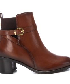 Botín de mujer, de la marca Carmela. Fabricado en piel de alta calidad. Cierre mediante cremallera. Elástico para ayudar a una mejor sujeción. Correa decorativa con detalle metálico. Suela de goma antideslizante. Tacón ancho de 6 cm.