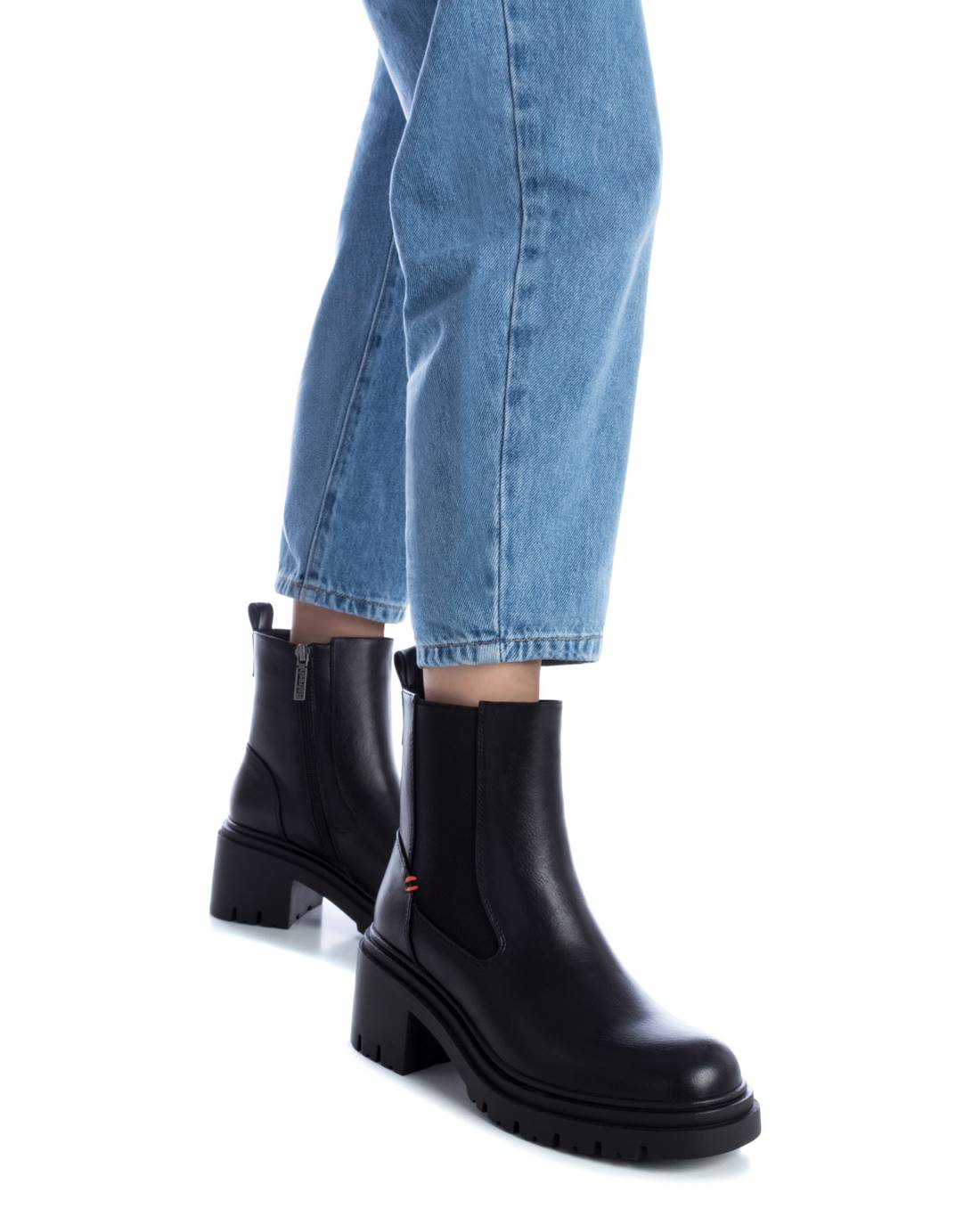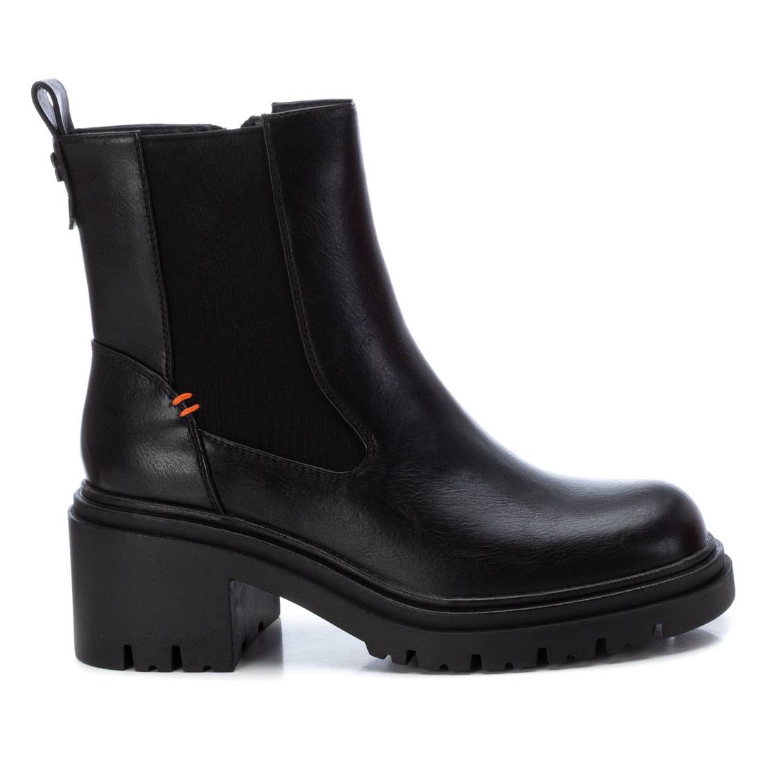 Botín de mujer, de la marca Refresh. Fabricado en material que imita la piel. Cierre mediante cremallera lateral. Tirador trasero para facilitar la puesta. Modelo tipo chelsea con elástico lateral. Tacón ancho de 6 cm con suela dentada de goma antideslizante. Este modelo ha obtenido el certificado vegano por la organización mundial PETA (Organización de los derechos de los animales).