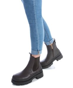 Botín de mujer, de la marca Xti. Fabricada en material que imita la piel. Modelo tipo chelsea con elástico lateral y tiradores para facilitar la puesta. Cierre mediante cremallera lateral. Cómoda suela gruesa de goma antideslizante. Este modelo ha obtenido el certificado vegano por la organización mundial PETA (Organización de los derechos de los animales).